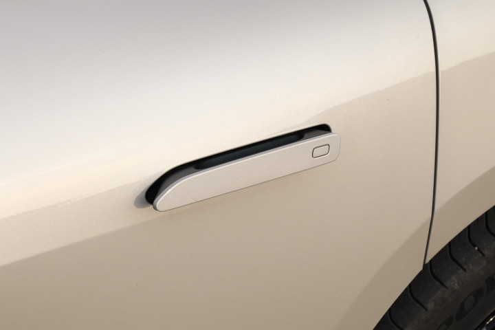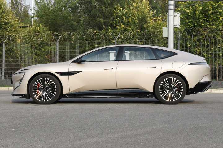 车身线条干净利落,没有多余的装饰。隐藏式门把手、无框车门、电动升降尾翼,这些元素组合在一起,营造出一种“克制的科技感”。尤其值得一提的是,尾翼并非只是装饰,它会根据车速自动升降,在高速时提供额外下压力,提升稳定性,低速时则收起以降低风阻和视觉干扰。
