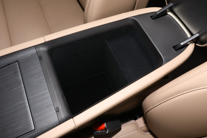 值得一提的是,智能升降快充浮岛设计巧妙。中央通道区域的无线充电板可电动升降,不用时隐藏于饰板之下,保持台面整洁;需要充电时缓缓升起,仪式感拉满,且不影响杯架或储物空间。